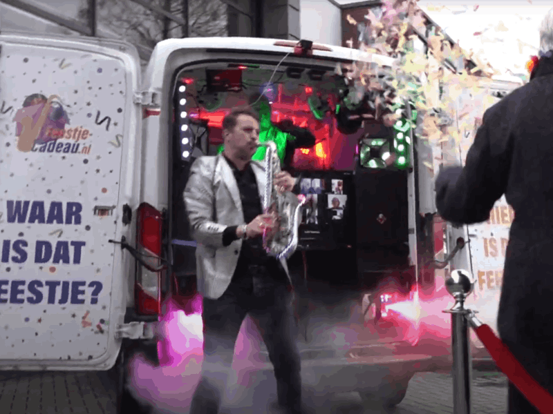 Het meest geboekt is ons ’Stoep-Feestje’ met onze bus vol licht, geluid, confetti kanonnen en rookmachines. Samen met onze top DJ & Saxofonist gaan we zorgen dat diegene dit nooit meer zal vergeten.